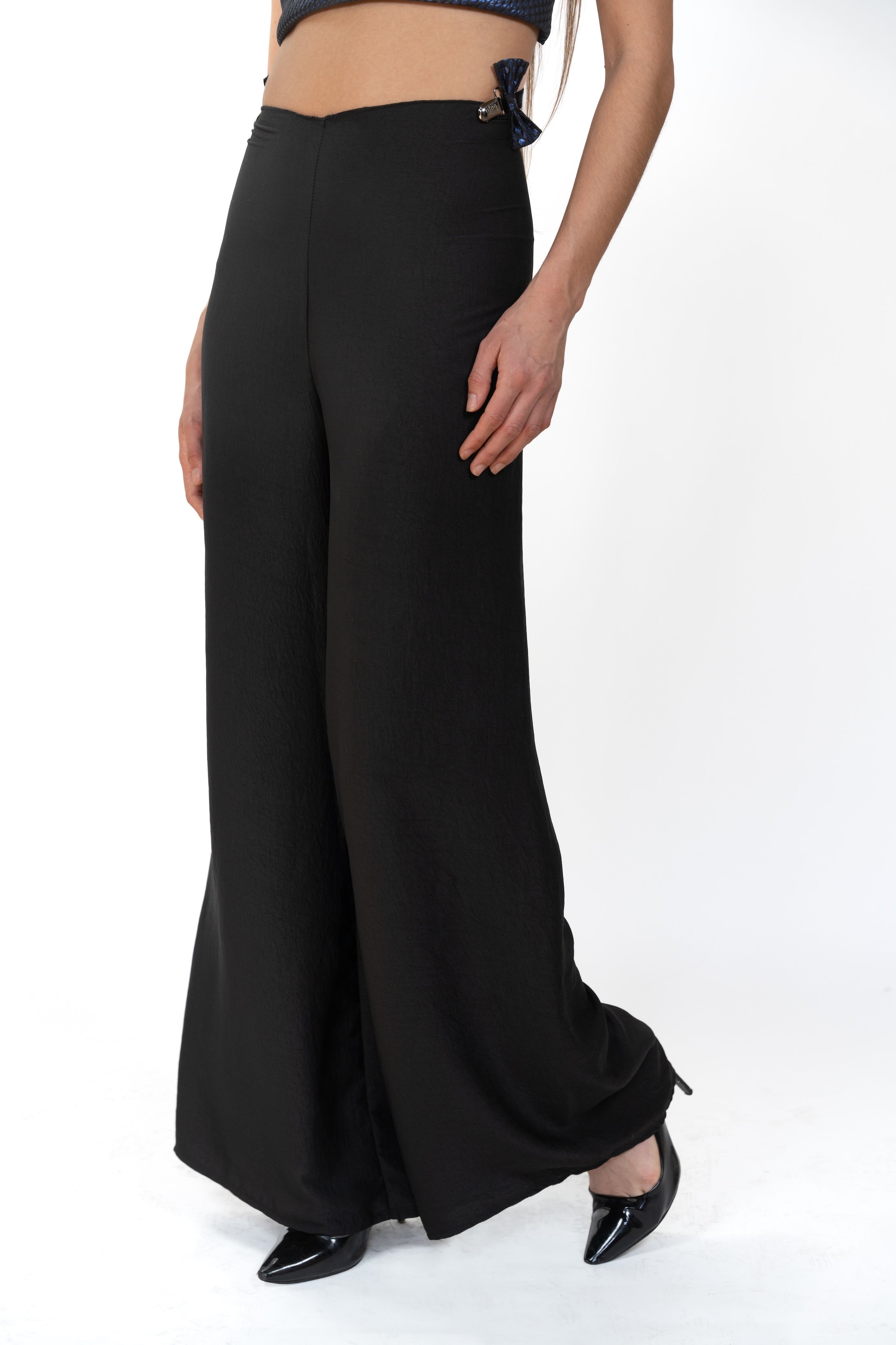 - Suspender clips at waist with bow detailing